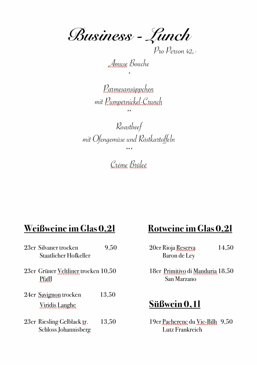 Mittags-Menüs für Ihre Veranstaltung